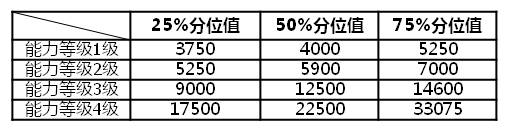 本次調(diào)研的能力等級分為4個等級,能力1級,能力2級,能力3級,能力4級。