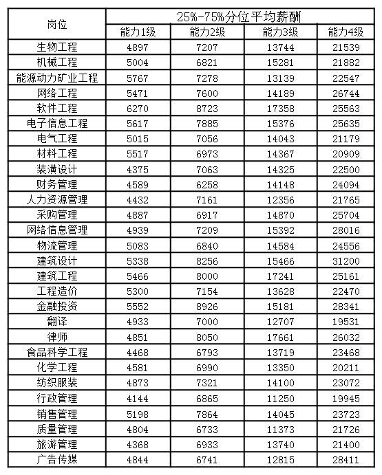 1. 各個崗位不同能力等級25%-75%分位平均薪酬