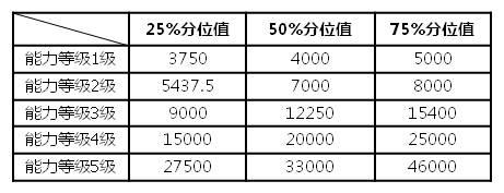 本次調(diào)研的能力等級分為4個等級,能力1級,能力2級,能力3級,能力4級,能力5級。