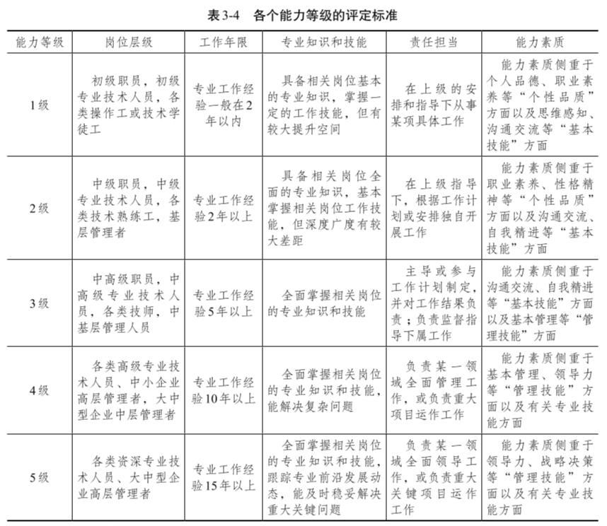 表 3-4 各個(gè)能力等級(jí)的評(píng)定標(biāo)準(zhǔn)