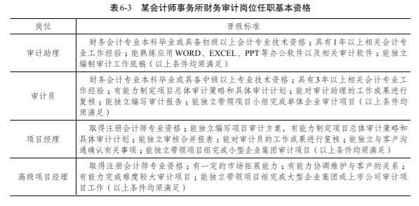 表 6-3是某會計師事務所財務審計序列崗位晉級基本要求。
