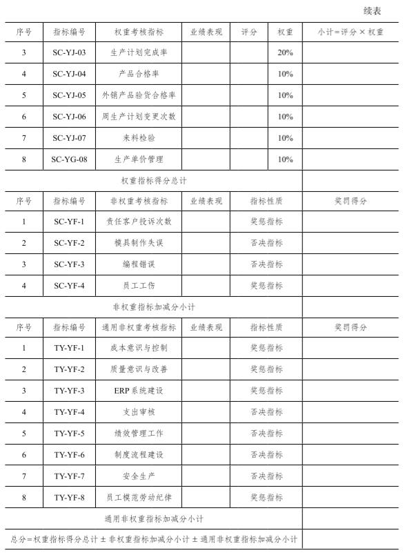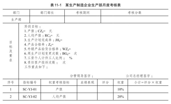 表11-1是某生產制造企業(yè)生產部月度考核表。
