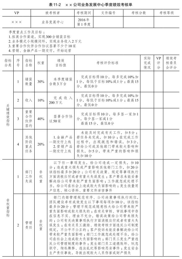 表 11-2是某互聯(lián)網企業(yè)業(yè)務拓展部門季度績效考核表。