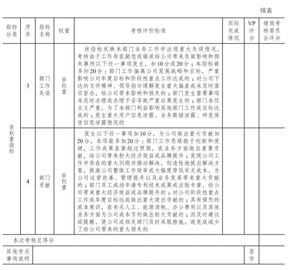 - .. 非權重指標所考核的事項一般不是常規(guī)工作,如果將其作為權重指標考核,會給績效考核的導向帶來影響,但事項的發(fā)生對組織和部門戰(zhàn)略目標的實現(xiàn)又具有重大意義和影響,因此對這類指標的考核采取不占權重的形式。