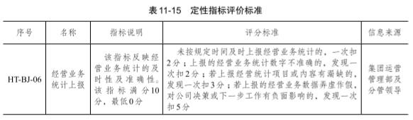 某地產(chǎn)公司的“經(jīng)營業(yè)務統(tǒng)計上報”就是一個定性指標,其評價標準如表11-15所示。