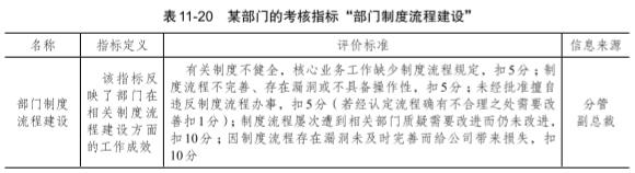 表 11-20為某部門的考核指標“部門制度流程建設(shè)”。該公司各項制度不健全、業(yè)務流程混亂、接口有重疊或缺失,導致管理效率低下。為了督促各部門進行規(guī)范化管理,增強部門工作的有效性,提高組織和流程的運行效率,特設(shè)置該指標,增強各部門對制度流程建設(shè)的重視程度和執(zhí)行力度。