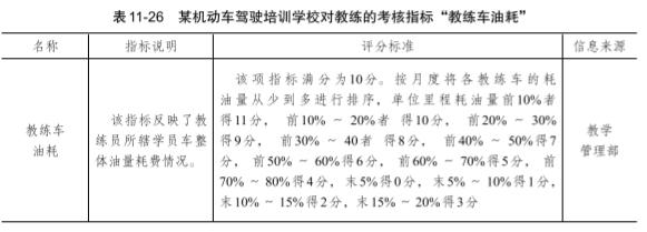 表 11-26為某駕駛培訓學校對機動車駕駛教練油耗方面的考核指標。該培訓學校一直以較高的培訓質(zhì)量和較高的機動車駕駛考試通過率而聞名,但隨著購車、學車群體的擴大以及油價的上漲,教練車的用油成本大幅度增加,特別是在暑期(經(jīng)常人員爆滿,天氣炎熱,需開空調(diào));教練的教車技術(shù)相差不大,但油耗量卻相去甚遠。因此,學校管理人員設(shè)置了“教練車油耗”考核指標,并評選“節(jié)油之星”,以督促教練在培訓過程中,優(yōu)化教學動作、空調(diào)使用以及行車里程的設(shè)置。