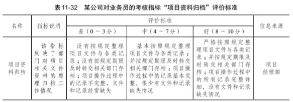 表11-32為某公司對業(yè)務員的考核指標“項目資料歸檔”,在評價標準中對有關(guān)工作要求有明確說明。