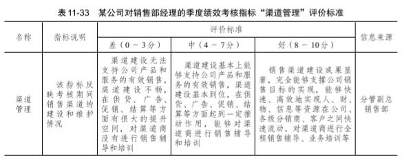 表 11-33為某公司對銷售部經(jīng)理的季度績效考核指標“渠道管理”。