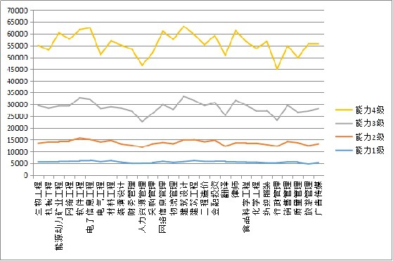 2. 能力等級能力等級體現(xiàn)了各專業(yè)的職業(yè)發(fā)展階梯,是水木知行薪酬數(shù)據(jù)庫建立的主線和基準(zhǔn),不同能力等級意味著不同的薪酬水平。 能力等級的劃分是對崗位要求的綜合判斷,通過對公司規(guī)模、崗位層級、工作年限、專業(yè)知識和技能、責(zé)任擔(dān)當(dāng)、能力素質(zhì)等多個(gè)方面,對能力等級進(jìn)行識別,可以劃分為以下五個(gè)等級:能力1級(初學(xué)者)能力2級(有經(jīng)驗(yàn)者)能力3級(經(jīng)驗(yàn)豐富者)能力4級(專家、大中型企業(yè)中層管理者、中小企業(yè)高層管理者)3. 競爭力薪酬指數(shù)水木知行薪酬指數(shù)包括本科畢業(yè)1年競爭力薪酬指數(shù)、本科畢業(yè)5年競爭力薪酬指數(shù)、本科畢業(yè)10年競爭力薪酬指數(shù)三個(gè)指數(shù);自2013年第一季度開始按季度公布。以2012年第四季度有關(guān)薪酬數(shù)據(jù)為基準(zhǔn),經(jīng)過統(tǒng)計(jì)處理,取基點(diǎn)為1000,2013年后各個(gè)季度指數(shù)等于當(dāng)期薪酬統(tǒng)計(jì)數(shù)據(jù)除以薪酬基準(zhǔn)數(shù);本科畢業(yè)1年薪酬指數(shù)計(jì)算數(shù)據(jù):以各個(gè)崗位能力等級為1級處于25%-75%分位所有樣本平均值為基礎(chǔ),根據(jù)各個(gè)崗位所占權(quán)重,加權(quán)計(jì)算出總的薪酬數(shù)據(jù);畢業(yè)畢業(yè)5年薪酬指數(shù)計(jì)算數(shù)據(jù):以各個(gè)崗位能力等級為2級處于50%-75%分位所有樣本以及能力等級為3級處于25%-75%所有樣本的平均值為基礎(chǔ),根據(jù)各個(gè)崗位所占權(quán)重,加權(quán)計(jì)算出總的薪酬數(shù)據(jù);畢業(yè)畢業(yè)10年薪酬指數(shù)計(jì)算數(shù)據(jù):以各個(gè)崗位能力等級為3級處于50%-75%分位所有樣本以及能力等級為4級處于25%-75%所有樣本的平均值為基礎(chǔ),根據(jù)各個(gè)崗位所占權(quán)重,加權(quán)計(jì)算出總的薪酬數(shù)據(jù);二、 各個(gè)崗位薪酬數(shù)據(jù)1. 各個(gè)崗位不同能力等級25%-75%分位平均薪酬