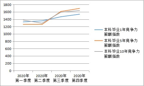 (注:2012年本科畢業(yè)1年薪酬加權(quán)平均數(shù)為3950,本科畢業(yè)5年薪酬加權(quán)平均數(shù)為7940,本科畢業(yè)10年薪酬加權(quán)平均數(shù)為13960)如下圖所示: