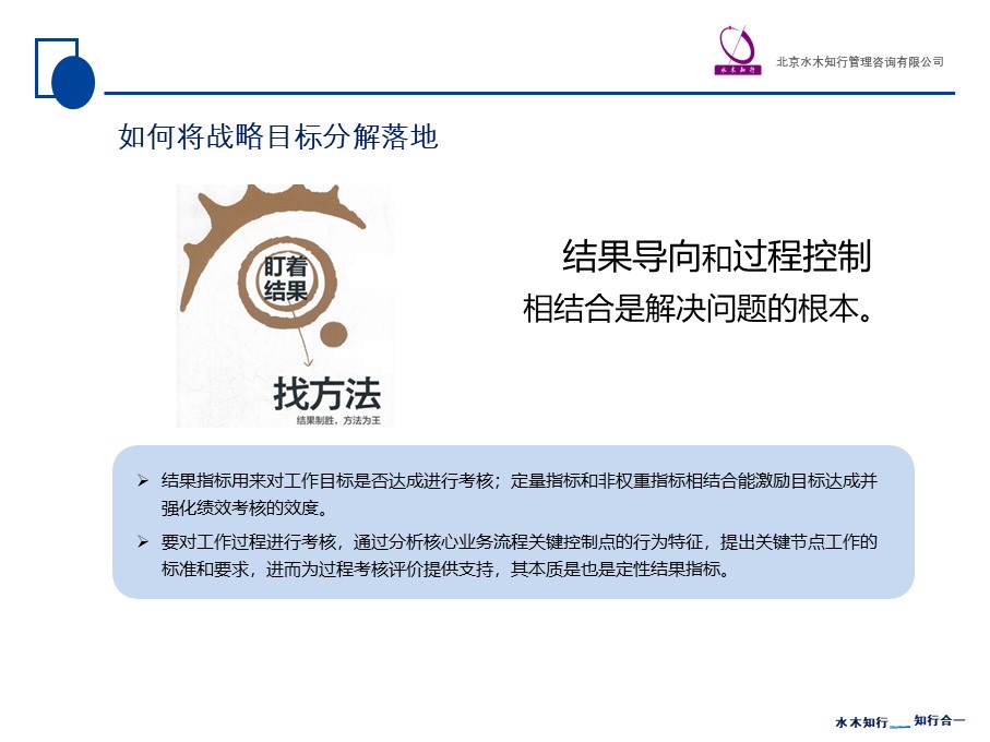 那么,應該如何解決這些問題呢?結果導向和過程控制相結合是解決這些問題的根本。