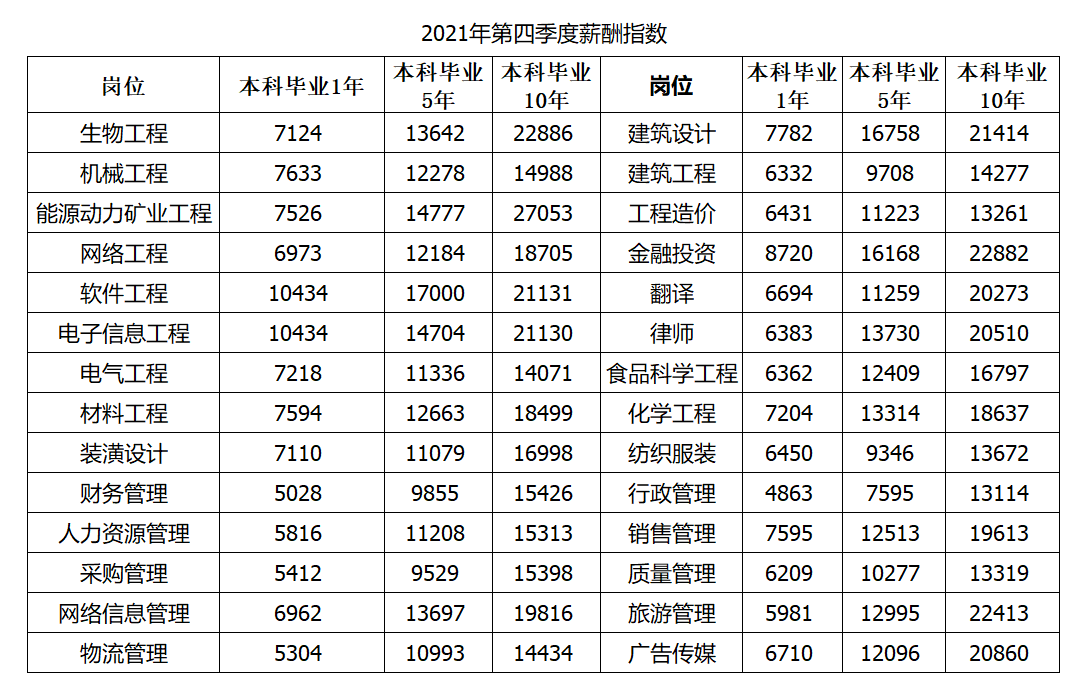 2021年第4季度薪酬指數(shù)及數(shù)據(jù)