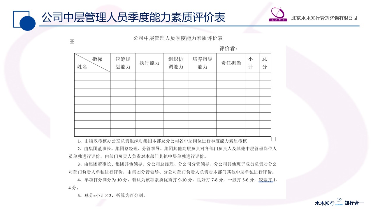 下圖是某集團公司中層管理人員季度能力素質(zhì)評價表。