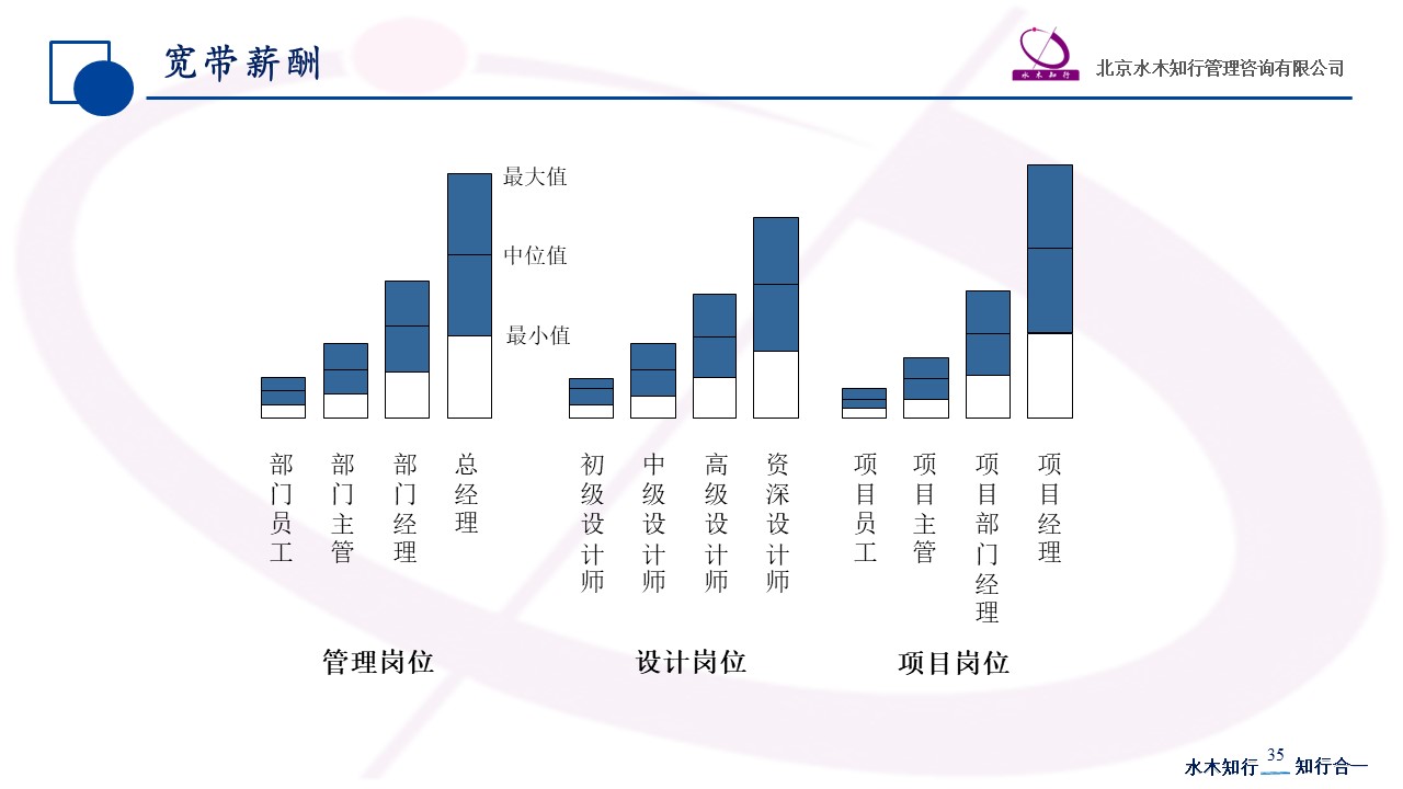 選擇什么樣的薪酬策略,取決于企業(yè)的企業(yè)文化、行業(yè)特性、崗位特征等多種因素。一般情況下,應(yīng)該給員工一定的薪酬晉升空間,薪酬空間的大小與崗位工作性質(zhì)有關(guān)系。對(duì)于專業(yè)技術(shù)崗位以及基層管理崗位員工,薪酬晉級(jí)空間應(yīng)該較大,薪酬帶寬可以超過(guò)50%,甚至到100%;但對(duì)于中高層管理崗位,晉升空間一般不宜太大,應(yīng)該更多的以績(jī)效工資性質(zhì)體現(xiàn);對(duì)于普通操作崗位員工,晉升空間應(yīng)該較少,一方面有利于公司節(jié)約成本,另一方面也有利于員工進(jìn)行職業(yè)轉(zhuǎn)換,獲得更好的職業(yè)發(fā)展。