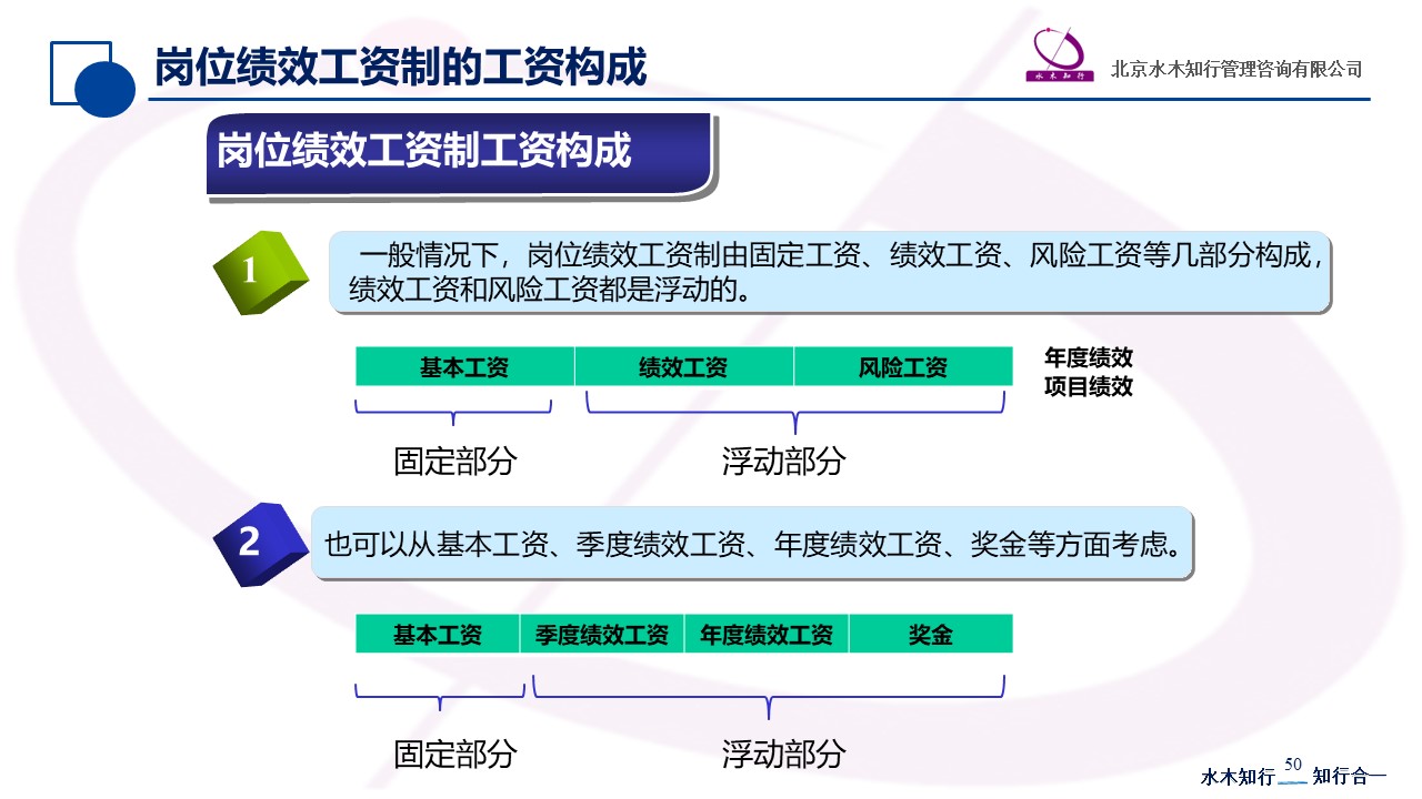 - 固定工資:崗位工資中的固定部分,根據(jù)出勤情況計算確定,月度發(fā)放。