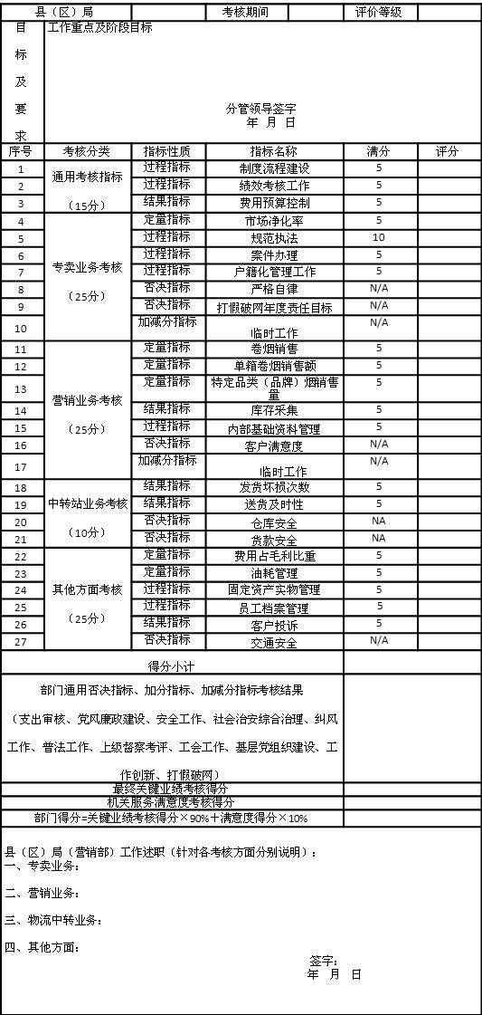 一、某煙草公司績(jī)效考核案例(一)縣(區(qū))局(公司)績(jī)效考核表
