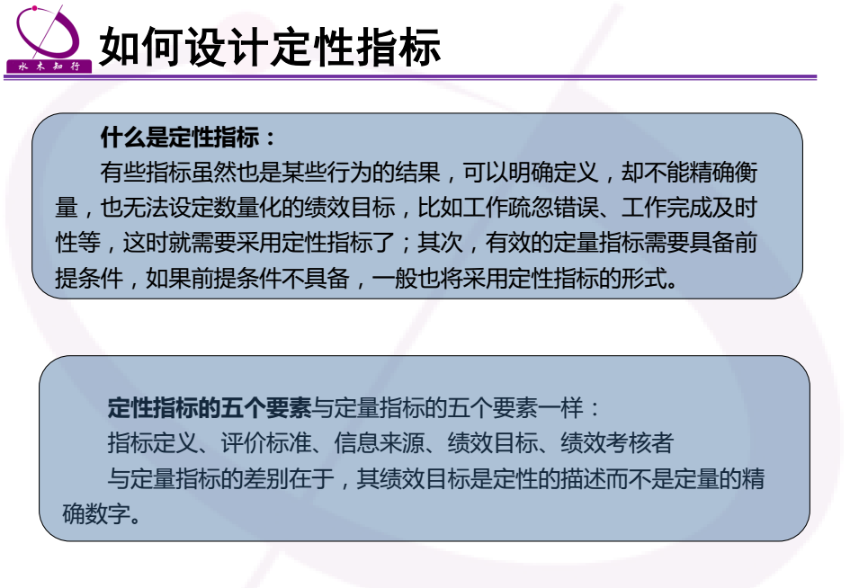 定量指標(biāo)在績效考核指標(biāo)體系中占有重要的地位,在保證績效考核結(jié)果公正客觀方面具有重要作用。但定量考核指標(biāo)并不意味著考核結(jié)果必然是公正公平,考核結(jié)果公正公平不一定需要全部是定量指標(biāo)。要求考核指標(biāo)全部量化的管理者,在某種程度上是不稱職的,表明其沒有正確評價下屬工作狀況的能力。