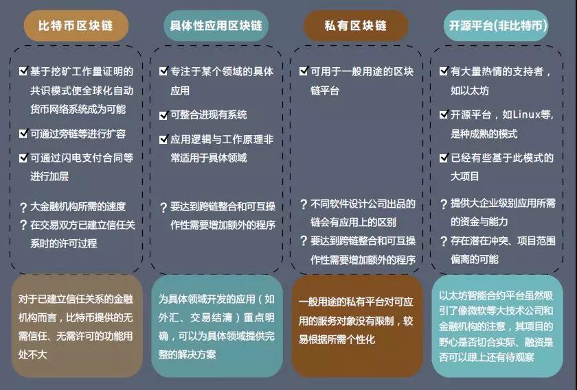圖3 區(qū)塊鏈:從比特幣技術到開源平臺技術其次,區(qū)塊鏈技術本身也在不斷裂變,產(chǎn)生多元的應用模式。它從過去專門為比特幣服務技術演化為專門領域服務的公共鏈演變出私鏈,側鏈,局域鏈等新形式。圖3 顯示過去兩年區(qū)塊鏈技術功能演變的多元化進程。目前,以“以太坊”為代表的開源平臺試圖克服第一代比特幣的諸多缺陷(耗能和超大計算量等),開發(fā)多用途的應用軟體。新發(fā)展方向包括解決“陌生信任”,允許用戶任意創(chuàng)建高級智能合約,實施去中心化的網(wǎng)絡交易關系管理。通俗地說,只要能夠數(shù)字化和網(wǎng)絡化的交易關系,就可以運用區(qū)塊鏈為核心的去中心化管理。去中心化管理的軟件選擇很多,但目前只有區(qū)塊鏈技術較好地解決了“陌生信任”的問題。它衍生出的“智能合約”可以成為個人之間、個人與組織之間和人與物聯(lián)網(wǎng)之間“智能信任”的解決方案。區(qū)塊鏈的信任紅利有智能合約,信任更加方便。區(qū)塊鏈派生出“智能合約”技術已經(jīng)開始廣泛運用到一系列文件記錄、儲存、交換、背書、認證活動中。它包括多方簽名交易、公共土地和產(chǎn)權交易、私人文件記錄、法律證明等。就像去中心化的金融交易過程一樣,區(qū)塊鏈也能做到合約的去中心化,自動撮合,自治實施。未來,只要能數(shù)字化的信息都可以加區(qū)塊鏈,只要能加鏈,信息產(chǎn)權就可以明晰,就可以設定保護條件,就能自動發(fā)起和強制實施交易合約。因為無需擔心信任驗證和信任的執(zhí)行,區(qū)塊鏈有潛力演化為通用組織管理技術,像60 年代的打鐘卡一樣。信任紅利首先體現(xiàn)在傳統(tǒng)交易制度創(chuàng)新中。區(qū)塊鏈的意義超過降低金融交易成本。它正成為改變市場制度設計的力量。據(jù)《經(jīng)濟學人》報道,洪都拉斯政府用它建立一套新的房地產(chǎn)契約登記和交易制度。在那個動蕩的國家,區(qū)塊鏈的安全加密給當?shù)厝藥硇湃胃?。作為哈希值的原?chuàng)企業(yè),IBM 正在研究“消費信用總帳”的概念。它利用區(qū)塊鏈的網(wǎng)絡式分布特征,對消費行為做交叉確認。例如,無需第三方,房東可以對租客遠程授權或取消授權。汽車租賃者的信譽、身份和消費支付可以實時確認,并保證信息安全。在奢侈品和藝術品市場,區(qū)塊鏈被用于產(chǎn)品認證和辨?zhèn)巍碜訠BC 的專題報道顯示,鉆石行業(yè)已經(jīng)使用區(qū)塊鏈辨別合法性。藝術品市場也引入?yún)^(qū)塊鏈技術,讓藝術作品傳承有序。信任紅利的另一個表現(xiàn)是區(qū)塊鏈技術能成全靈活多樣的交易方式。例如,德國萊茵集團(RWE)在研究除了充電時間長短外,可否設定充電量,以此向電動車主收費。再如,智能家居與超市聯(lián)網(wǎng),自動確認交易,完成交割。新技術可以根據(jù)消費變化直接補貨,無需發(fā)起者再度干預。它將對物聯(lián)網(wǎng)的發(fā)展有重大意義。類似的交易技術已經(jīng)存在。但是因為缺乏內置的智能信任,它們無法迅速推廣。信任紅利的第三個表現(xiàn)在利用智能合約突破交易量大小的約束,讓P2P 的“微點”交易變?yōu)楝F(xiàn)實。美國的ConsenSys 和“羽國”(Ujo)音樂正嘗試追蹤網(wǎng)上單曲播放和收費。單曲的“長尾細分”市場早就存在。但對P2P 模式,非法下載的消費監(jiān)控和執(zhí)法成本高,難追蹤收費。未來,只要有點擊消費,加密后的信息總帳就有記錄,并有能力強制實施。當小微原創(chuàng)者有此技術武裝后,各大門戶網(wǎng)站也必須支付轉載的內容。它幫助終止對小微原創(chuàng)者的剝削。新技術帶來的信任紅利挑戰(zhàn)新制度經(jīng)濟學家對信任成本的看法。信任高成本至少來源三方面:(1)任務分工和責任分辨成本。好似羽毛球雙打運動員,很難事先完全明顯分工責任。任務的動態(tài)相關性越高,分辨成本越高。(2)對任務執(zhí)行過程的量化監(jiān)控幾乎不可能。在德魯克(Peter Drucker)設想的知識經(jīng)濟中,以大腦中的認知活動為基礎的勞動很難過程監(jiān)控,很難區(qū)別想工作與開小差。(3)即使可以分辨和監(jiān)控,執(zhí)行獎懲還有不確定性。老賴存在,因為從法庭判決到執(zhí)行還有一個過程和條件。美國田納西州的孟菲斯(Memphis)為破產(chǎn)之都,因為在那兒破產(chǎn)后的債務責任可以談判,能夠仲裁。法院判定不算,仲裁和解的結果才能當真。一般而言,干活發(fā)工資是板上釘釘?shù)氖虑椤2贿^,許多農民工都有討薪的經(jīng)歷。區(qū)塊鏈衍生的技術可以降低上述信任成本:(1)因為有內置的時序邏輯,合作者執(zhí)行任務貢獻大小都有一本加密的歷史帳,值得信任。這樣,對事先難以分工和分責的任務,合作者可以事后結賬,并且可以相信系統(tǒng)會自動實施。例如,多位作者合作編寫一本書。作者之間的思想不斷交叉發(fā)展,不斷交織在一起。加密的歷史紀錄和交易系統(tǒng)將在書完成之后總結每個人的貢獻,并自動記賬和結賬。類似的軟件現(xiàn)在有,但如果涉及大量陌生參與者,相互有信任問題,現(xiàn)在的軟件就無法解決不斷增大的信任成本。(2)因為加區(qū)塊鏈跟蹤個人智慧產(chǎn)權使用情況的成本低,自動化程度高,而且值得信任,組織可以將大產(chǎn)權原子化到個人。每個人的貢獻和收益都可以通過加密信